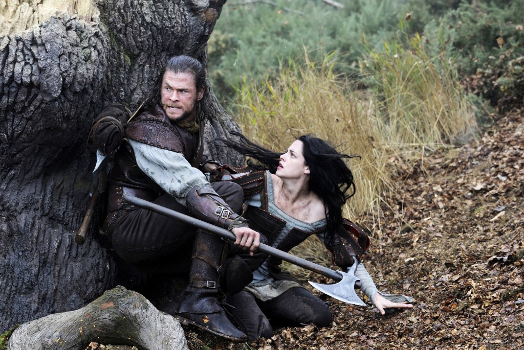 Snow White escapes the grasp of the Queen’s brother and runs into the dark forest. The queen must find someone brave enough to track Snow White into the dark forest, where most men won’t venture. Chris Hemsworth plays the dirty, but handsome Huntsman. The Queen promises to use her powers to bring his wife back in exchange for retrieving Snow White.